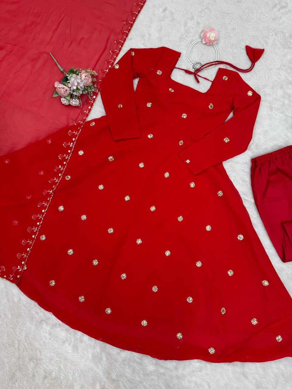 RTC 5872 Foux Gorgette Beads with moti handwork Readymade Dress has been successfully added to your cart .