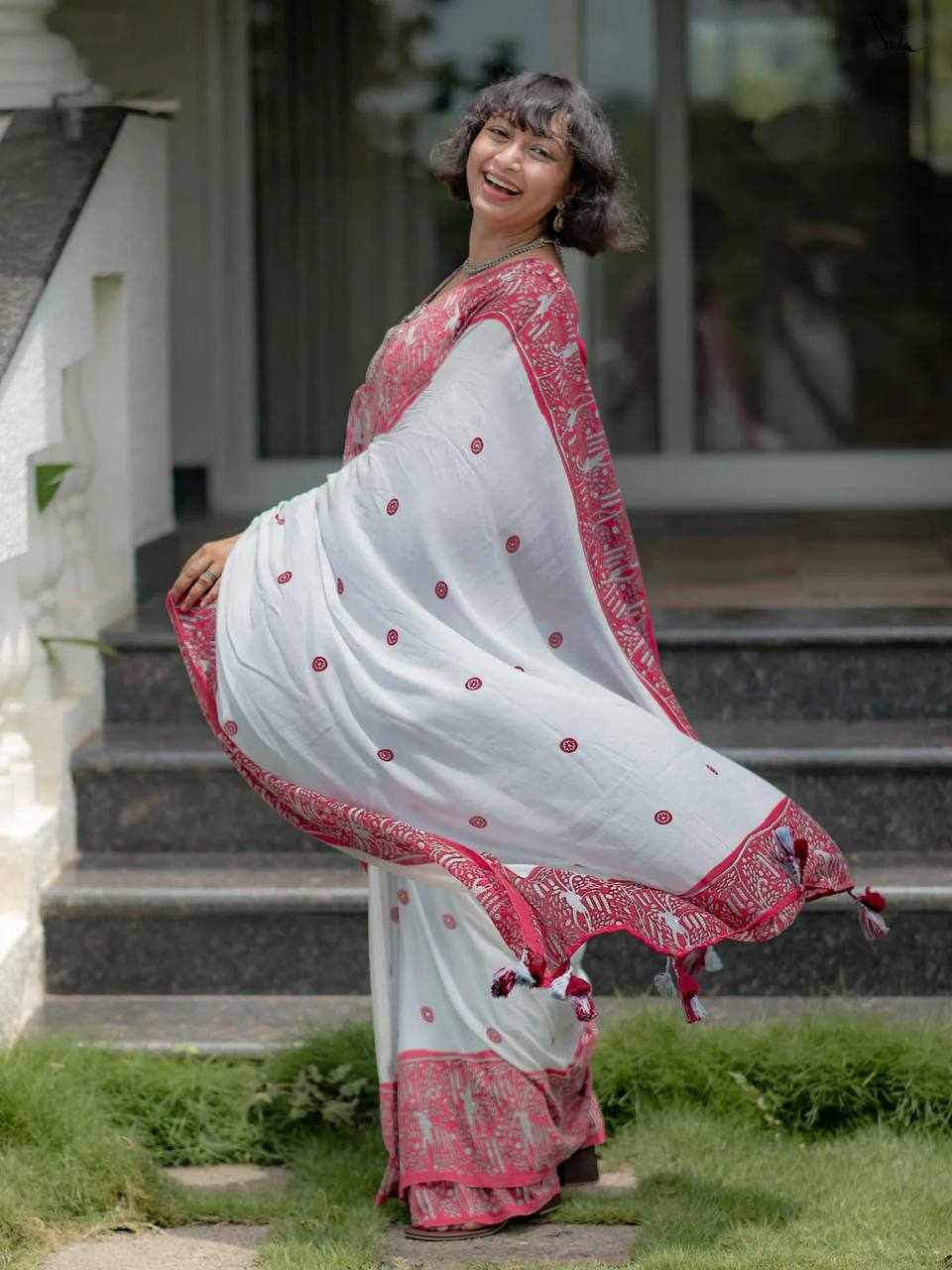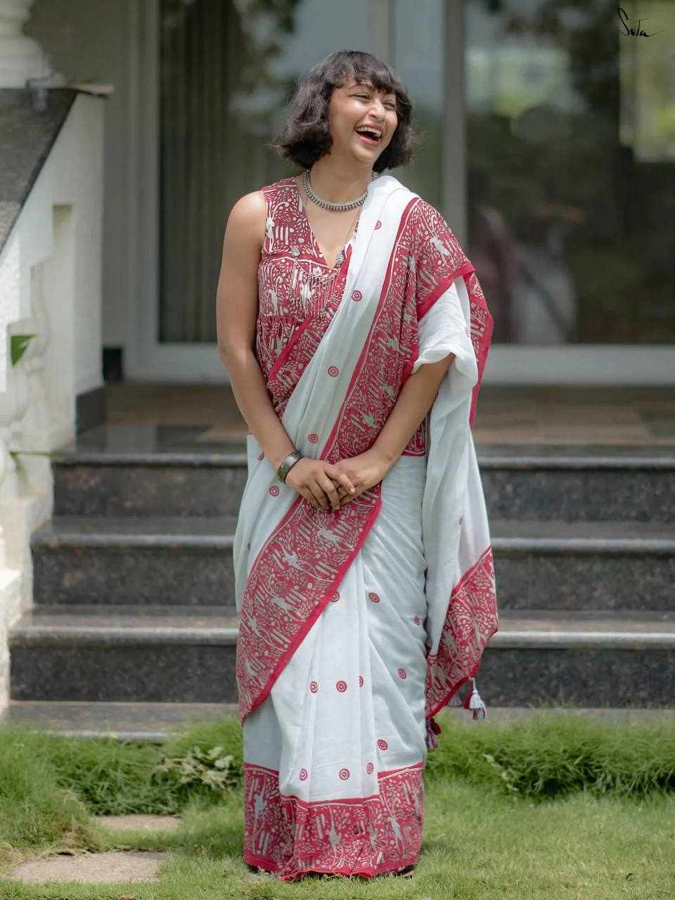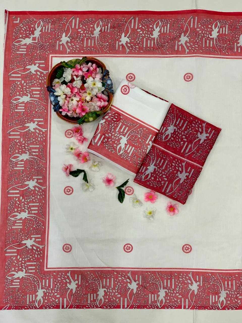 Saree Fabric: Premium Linen Cotton with beautiful digital print
