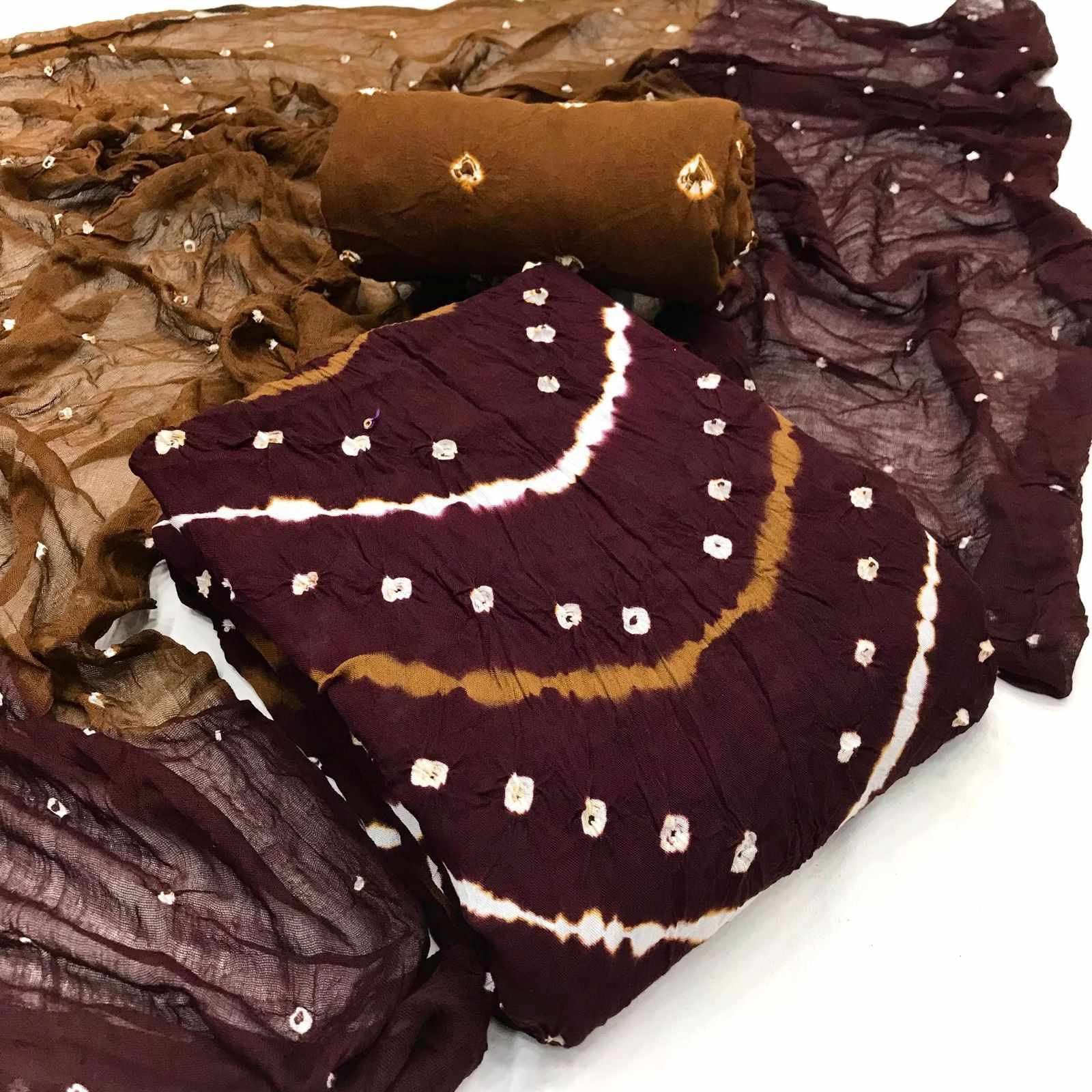KT GULZAR Brown Pure Rayon Leriya Petern Bandhni Dress Materail has been successfully added to your cart .