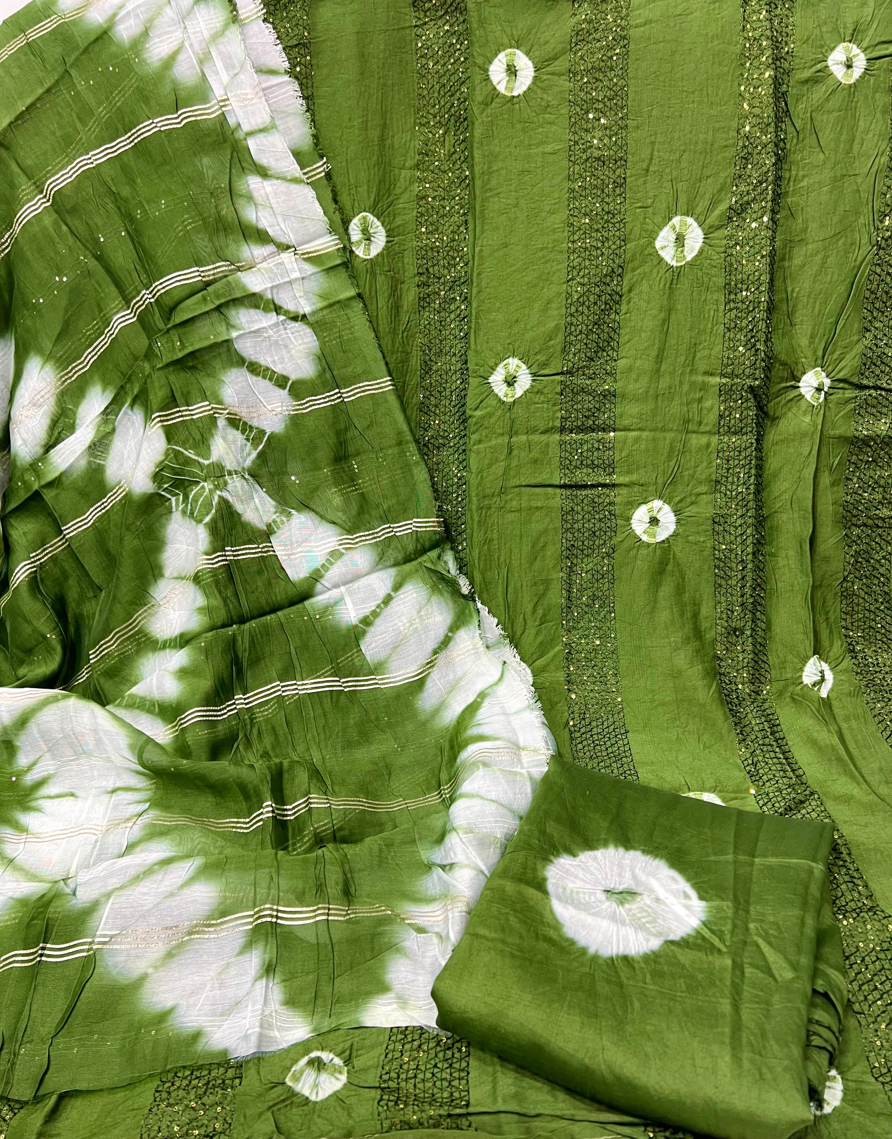 KT MAHARANI Pure viscose Cotton Bandhni sequence work Dress Materail