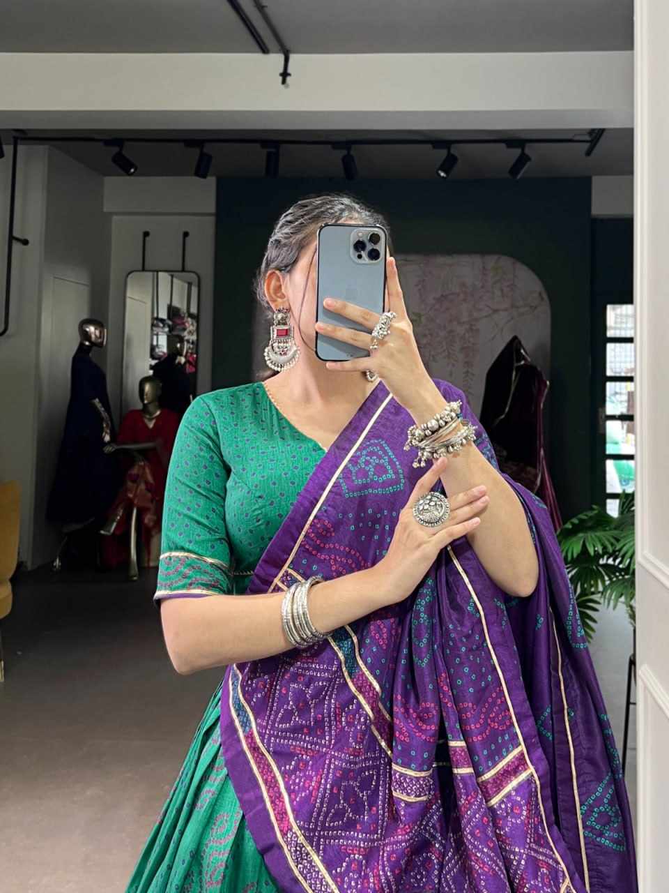 | Name : | PIYU 30-1 Silk Chaniya Choli With Viving Foil Green Lehnga |