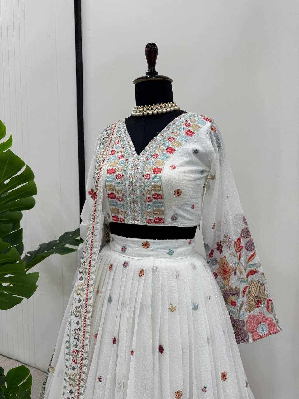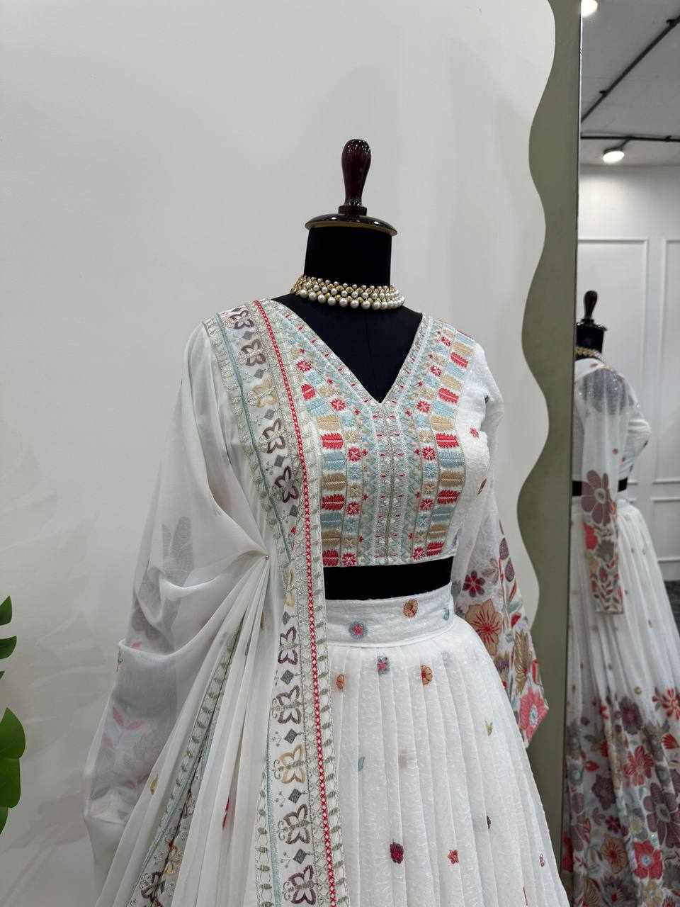 | Name : | QRC 286 White Foux gorgette Lehengha |