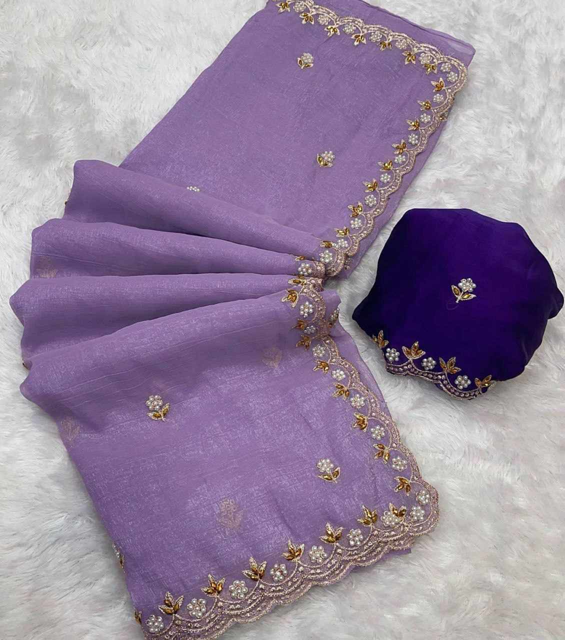 Fabric: Candy Crush Silk with Beautiful Embroidery & Moti Work, Scalloped Cutwork Border