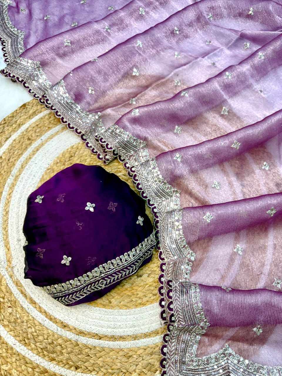 | Name : | RC Purple Sitara Thread Embroidery Beautiful Saree |
