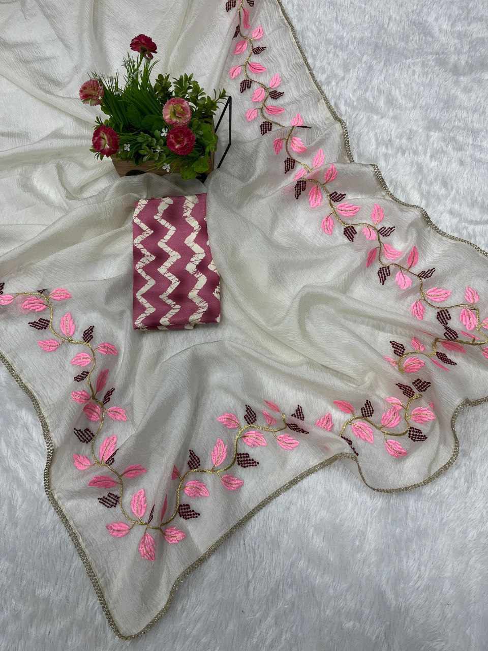 RC WHITE Beautiful Designer Saree