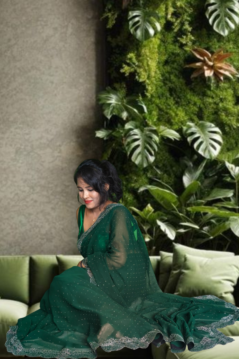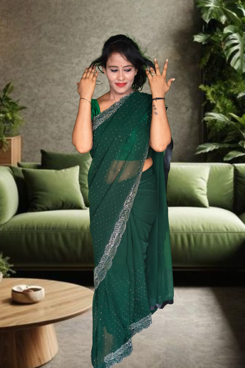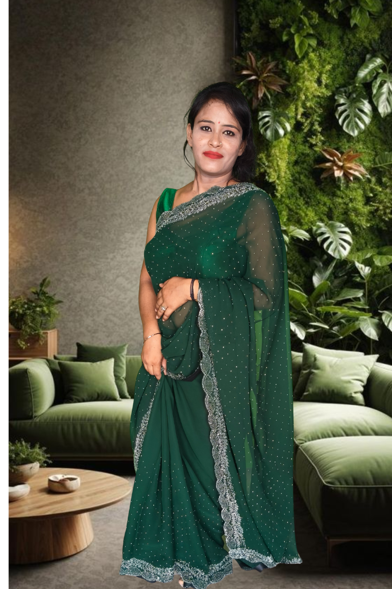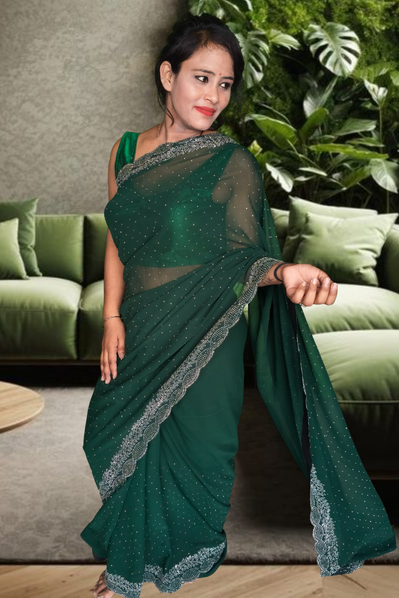 | Name : | S4s Green Karishma Siroski Stones Lace Georgette Party Wear Saree |