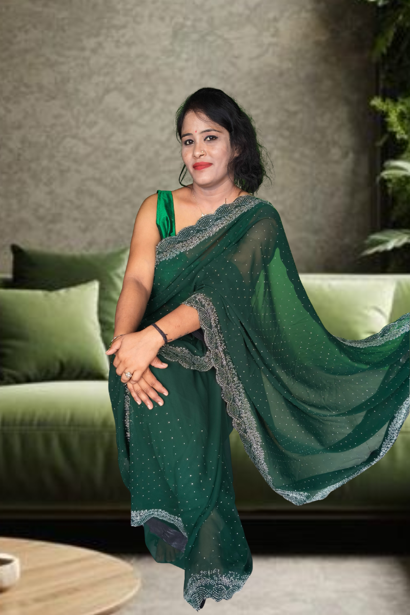Reviews for S4s Green Karishma Siroski Stones Lace Georgette Party Wear Saree