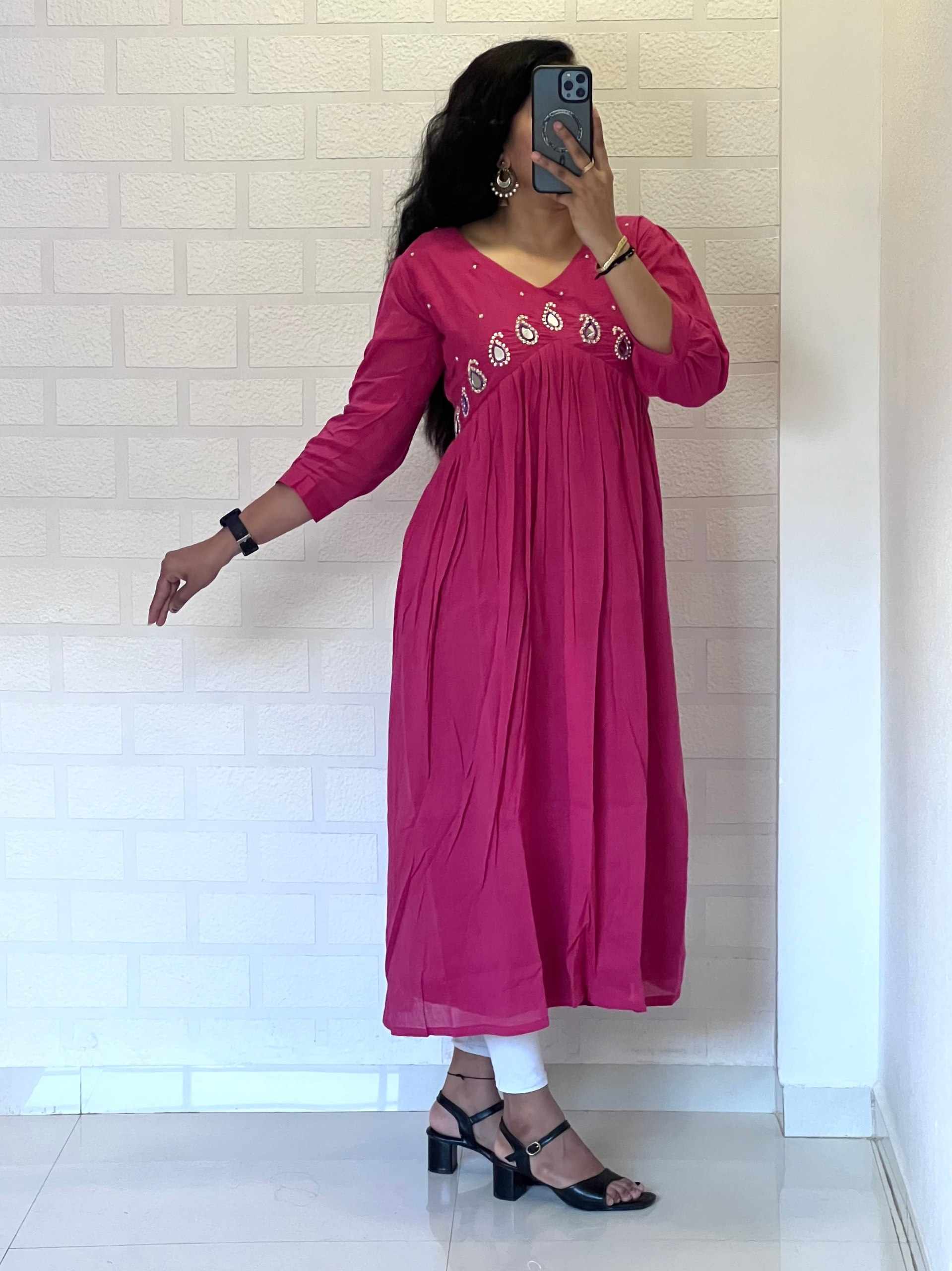 JKWH 998 Pure Fine Cotton Febric Embroidery Work A-line Kurti Set With Pocket